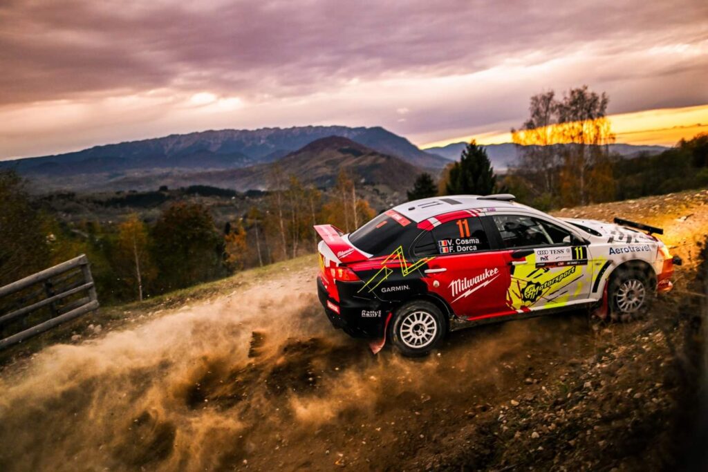 Vlad Cosma & Florin Dorca (Mitsubishi Lancer Evo X) în timpul probei ”Bran” 2023 – Foto: Momentum Agency